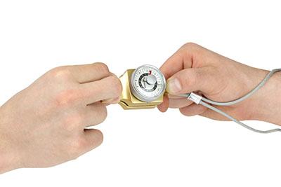 Pincemètre mécanique Baseline avec valise de transport. L'indicateur de force maximale reste bloqué sur sa valeur maximale jusqu'à sa réinitialisation. La force peut être affichée en livres ou en kilogrammes.