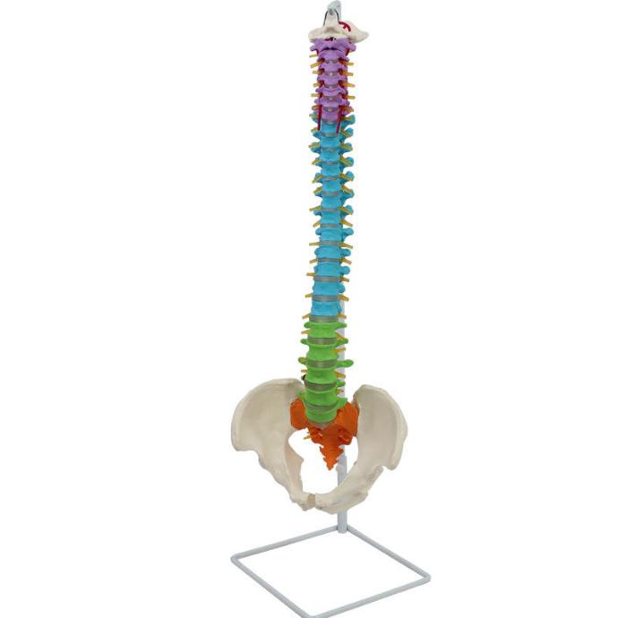 Ce modèle est codé par couleur pour distinguer clairement les régions cervicale, thoracique et lombaire de la colonne vertébrale, ce qui en fait un excellent outil d'apprentissage. Il inclut un bassin complet et les nerfs spinaux pour une vue anatomique exhaustive. La flexibilité du montage permet de faire des démonstrations réalistes des mouvements de la colonne vertébrale.
